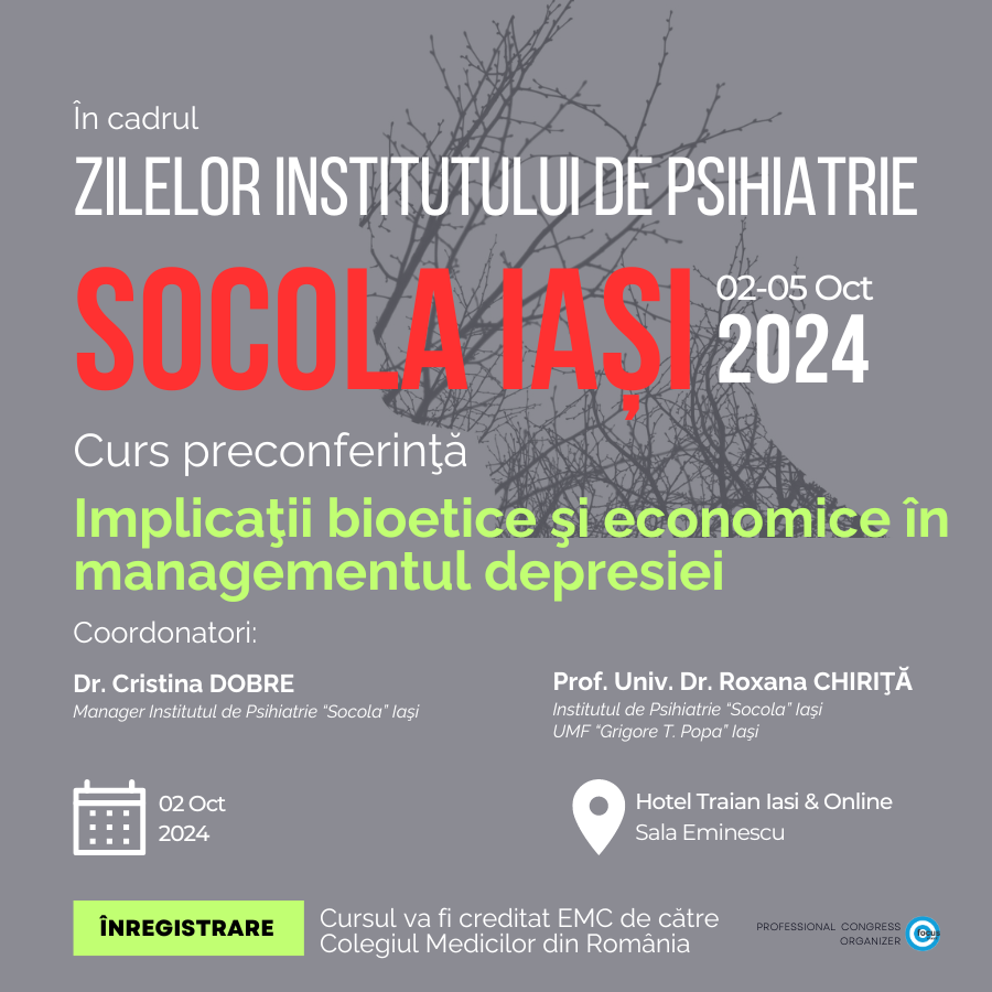 Dorim să vă informăm asupra faptului că tradiționalele Zile ale Institutului de Psihiatrie „Socola” revin în atenția tuturor celor interesați în perioada 02-05 octombrie 2024 la Iași la Hotel Traian.