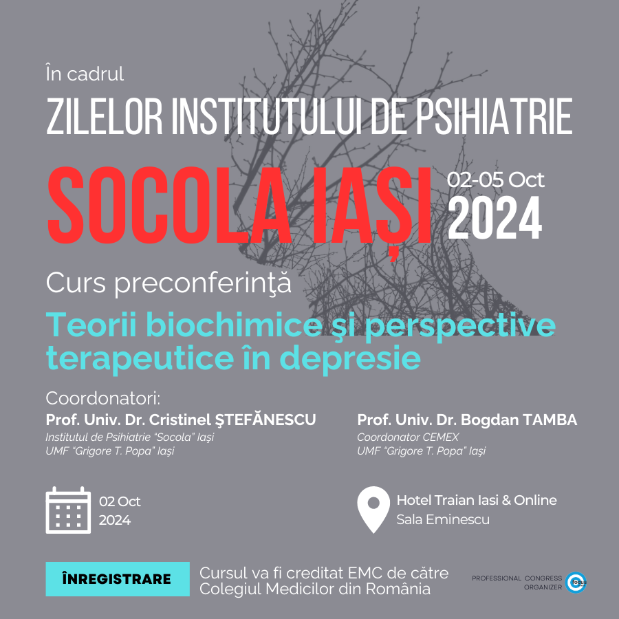 Curs preconferință „Teorii Biochimice și perspective terapeutice în depresie” – 4 Credite EMC